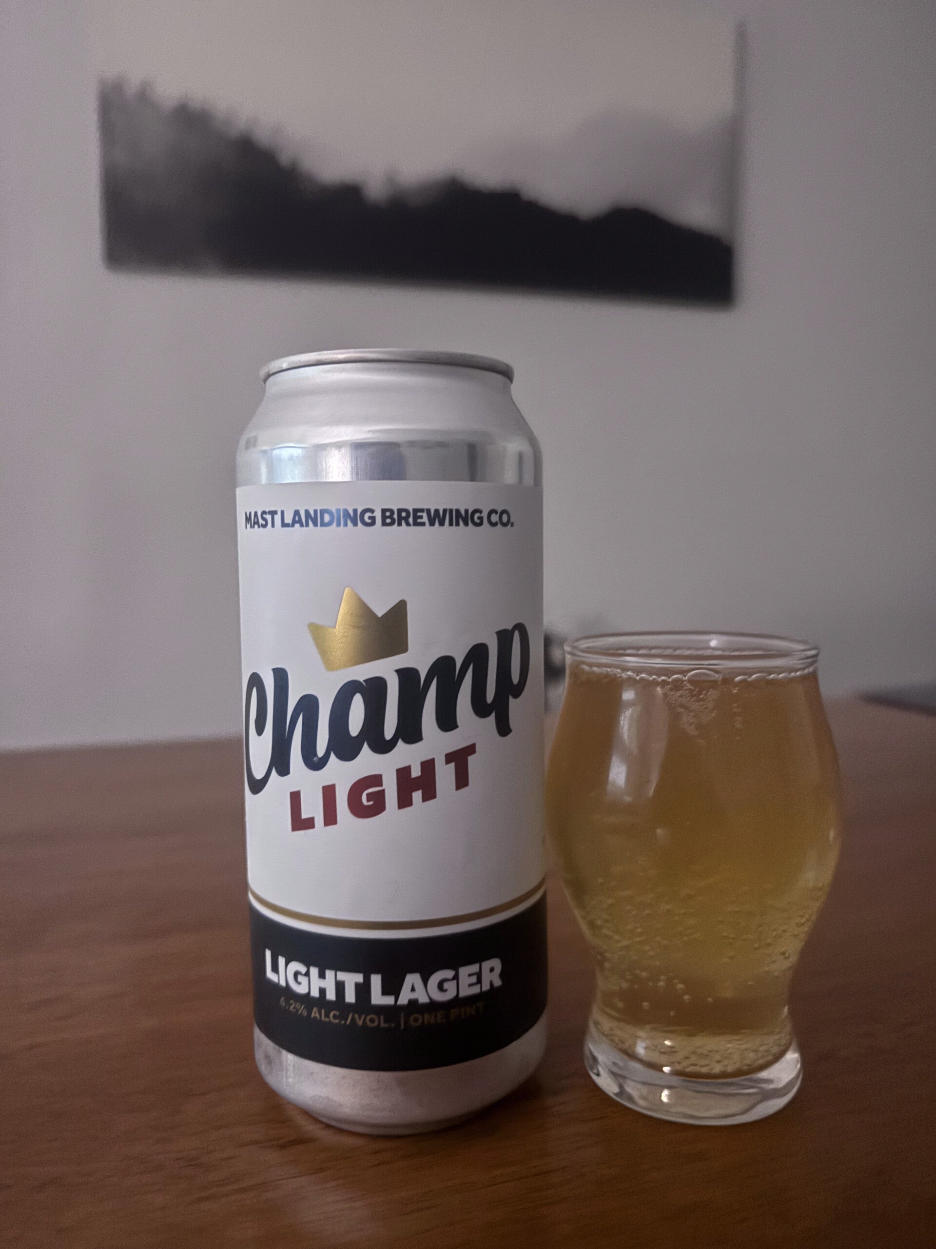 The Can: This can is the reason I chose this beer when selecting my next round to try. It isn't much, but the color scheme against the silver of the can is really sharp, especially in person. The dark colors used in the "Champ" and the bottom being matched that with the gold of the crown and red of the "Light" really contrasts well against the white background. The gold stripe gives this can a bit of a hockey jersey vibe. Overall, just an easy, but solid, color scheme that grabs the eye... or at least mine.